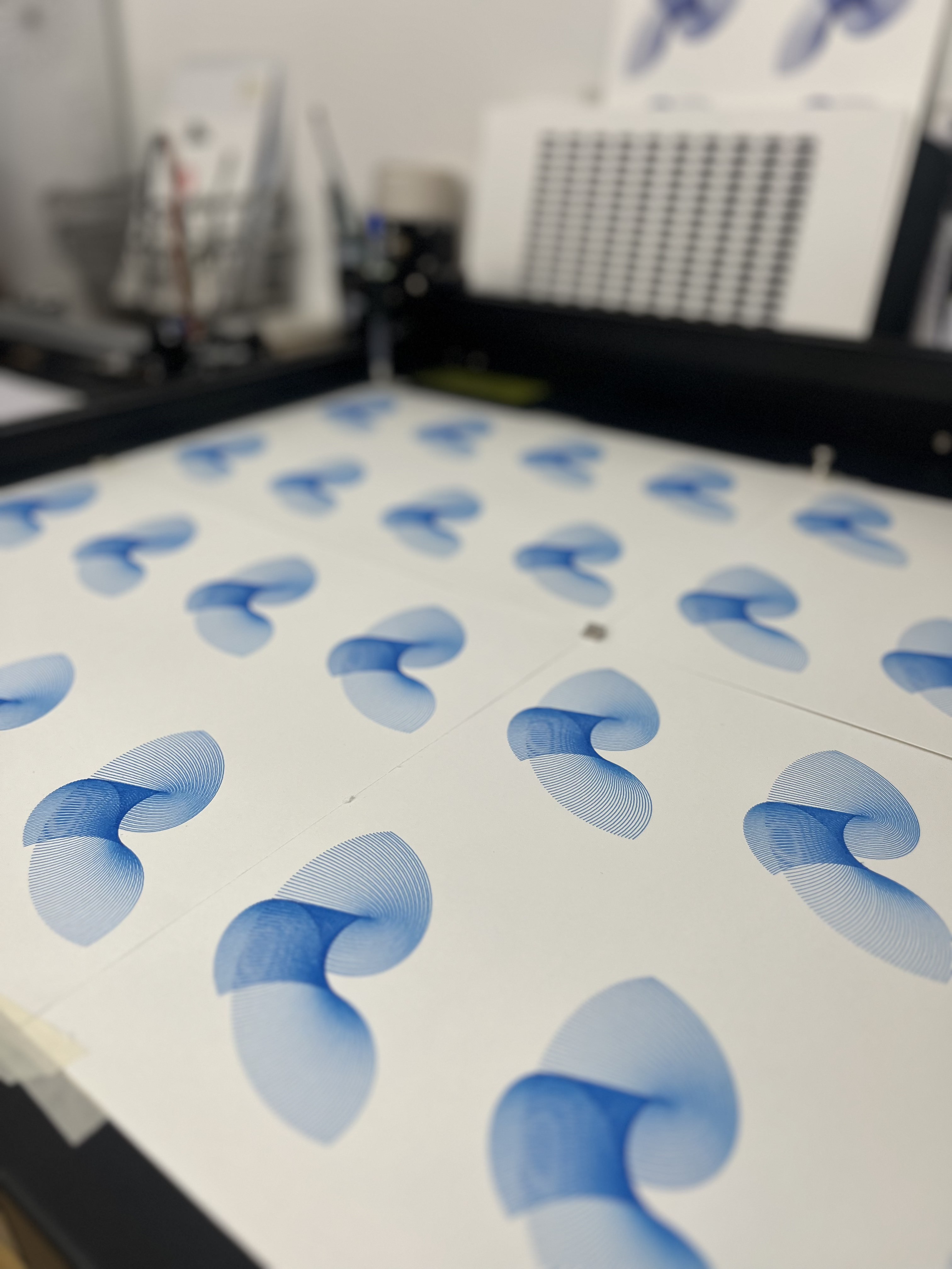 Over the past decade my visual art practice has evolved with the use of digital tools and a desire to explore the relationship of creating art with a computer. Introducing a plotter to my workflow began as an experiment in giving my digital pieces a more tangible presence through traditional drawing methods, but it ultimately transformed the way I make art. I’ve recently added the Uuna Tek 3.0 A1 to my studio which has pushed that shift even further, expanding my edition capacity and opening new creative possibilities through its larger format.