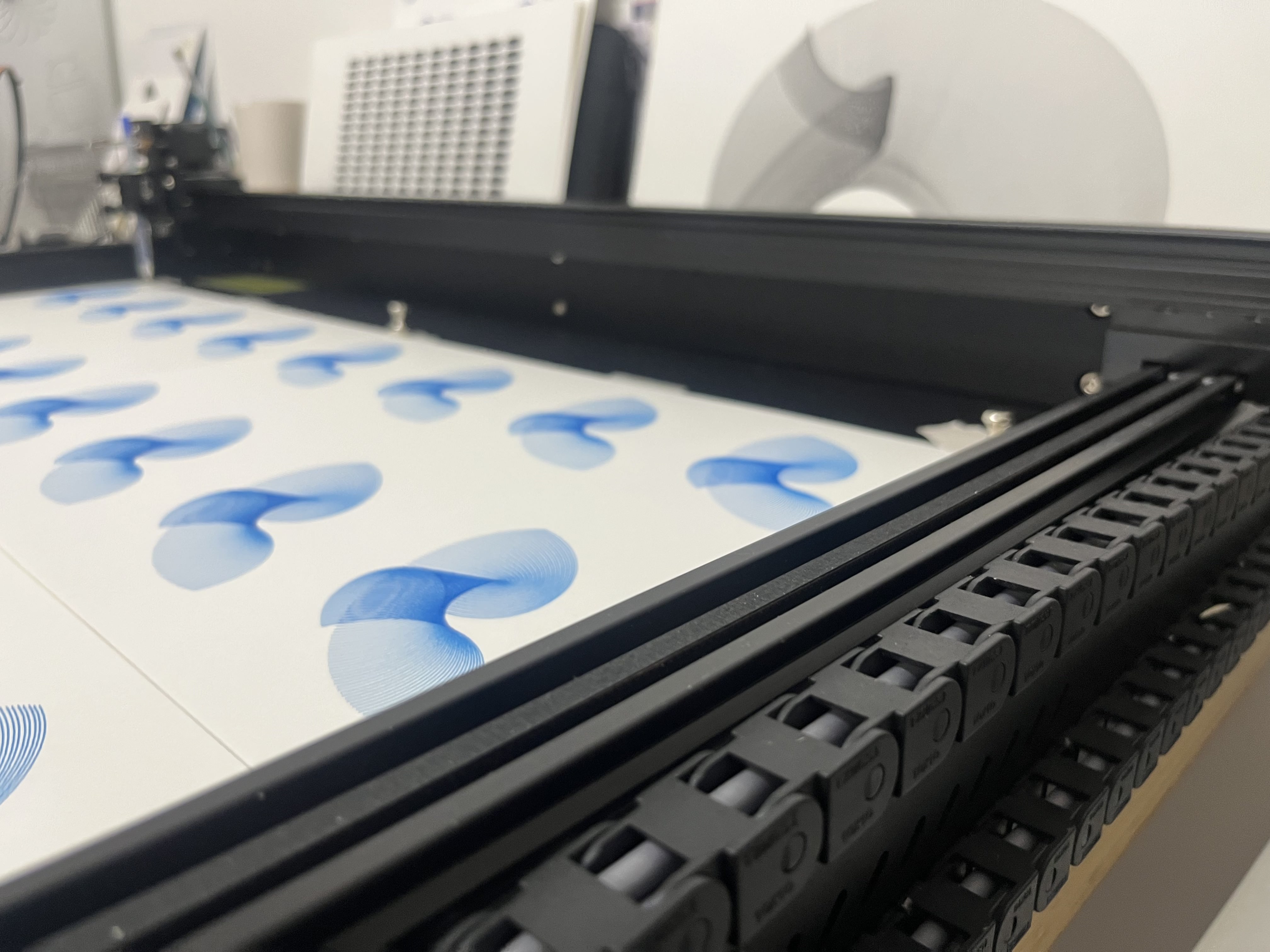 That opportunity came when I was able to test the Uuna Tek 3.0. I opted for the A1 model which was the largest I could realistically fit into my studio. Simply put, it’s a game changer for producing larger edition runs. I can set up a batch and confidently step away, knowing it will turn out four times what I could manage on the A3 with roughly the same amount of prep. Meaning that, depending on the size of plot I’m producing (currently A3 to A6), that’s going from 1-8 to 4-32 plots in a single run.